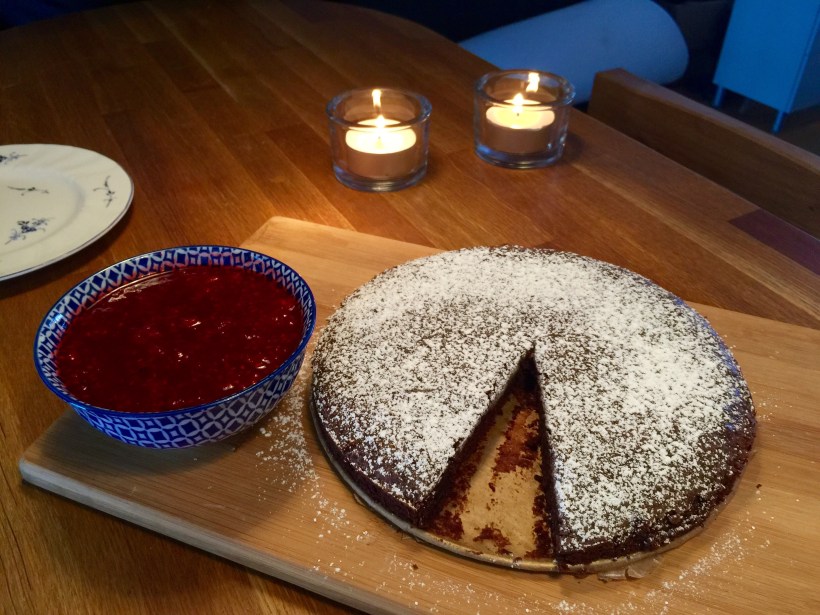 I dag blev det en enkel kladdkaka till fika när Håkan & farmor kom på besök.