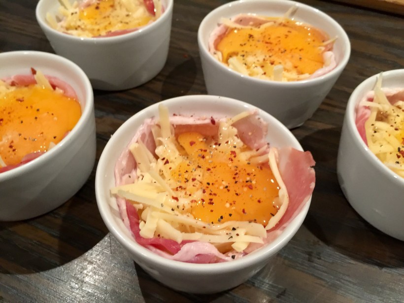Vispa i hop ägg, grädde, salt & peppar. Smält smöret i en liten teflonpanna på medelvärme och häll i äggsmeten. Rör lite då och då med en slev och lägg sedan på ett lock som täcker pannan när omeletten börjar stelna. När den nästan är klar så häll på ost, skinka och tomater. vik i hop och låt ligga en stund på eftervärmen så osten smälter och omeletten stelnat helt.