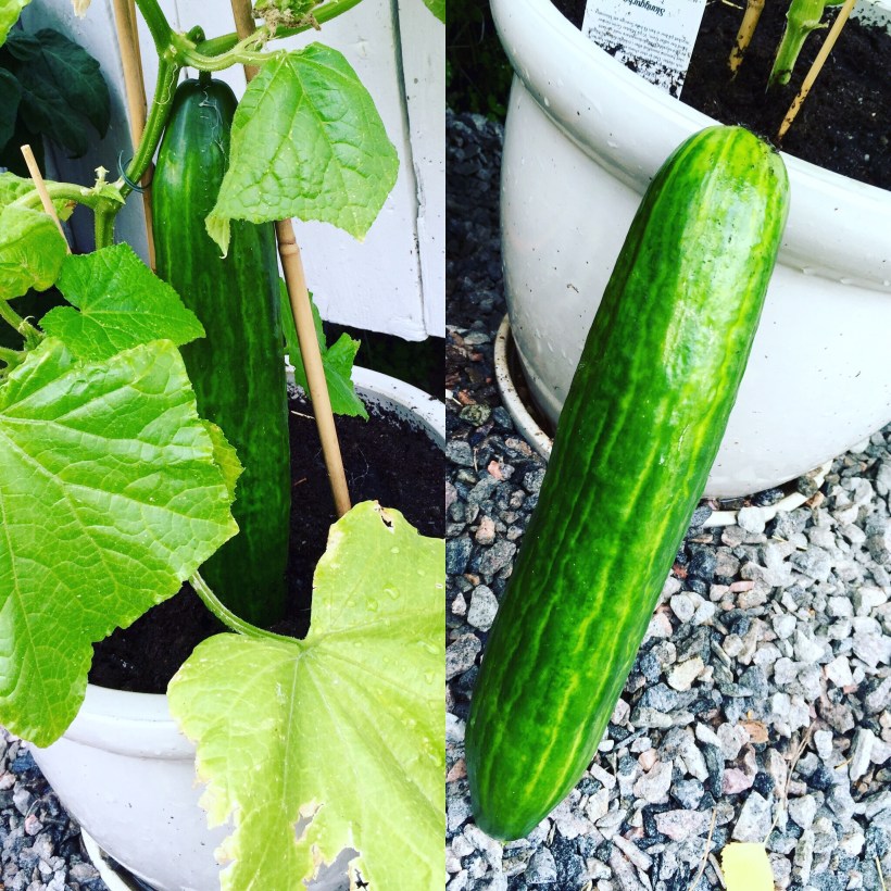 Visst är det väl kul att odla sina grönsaker själv. I morse gick jag ut och plockade lite sallad och ‘ våran alldeles första nyskördade gurka ‘ så kul.
