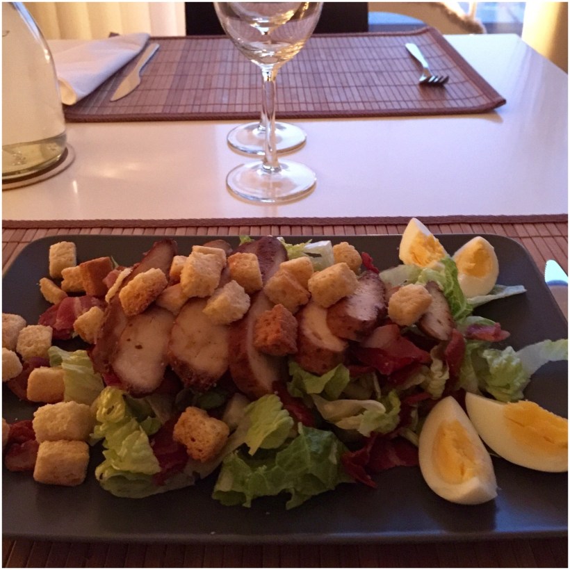 Sallad är väl något som alltid går hem. Hur gott som helst. Vi körde med färdigköpt dressing ‘Caesardressing’. Åh varför inte lite fika till kaffet, kärleksmums med strössel.