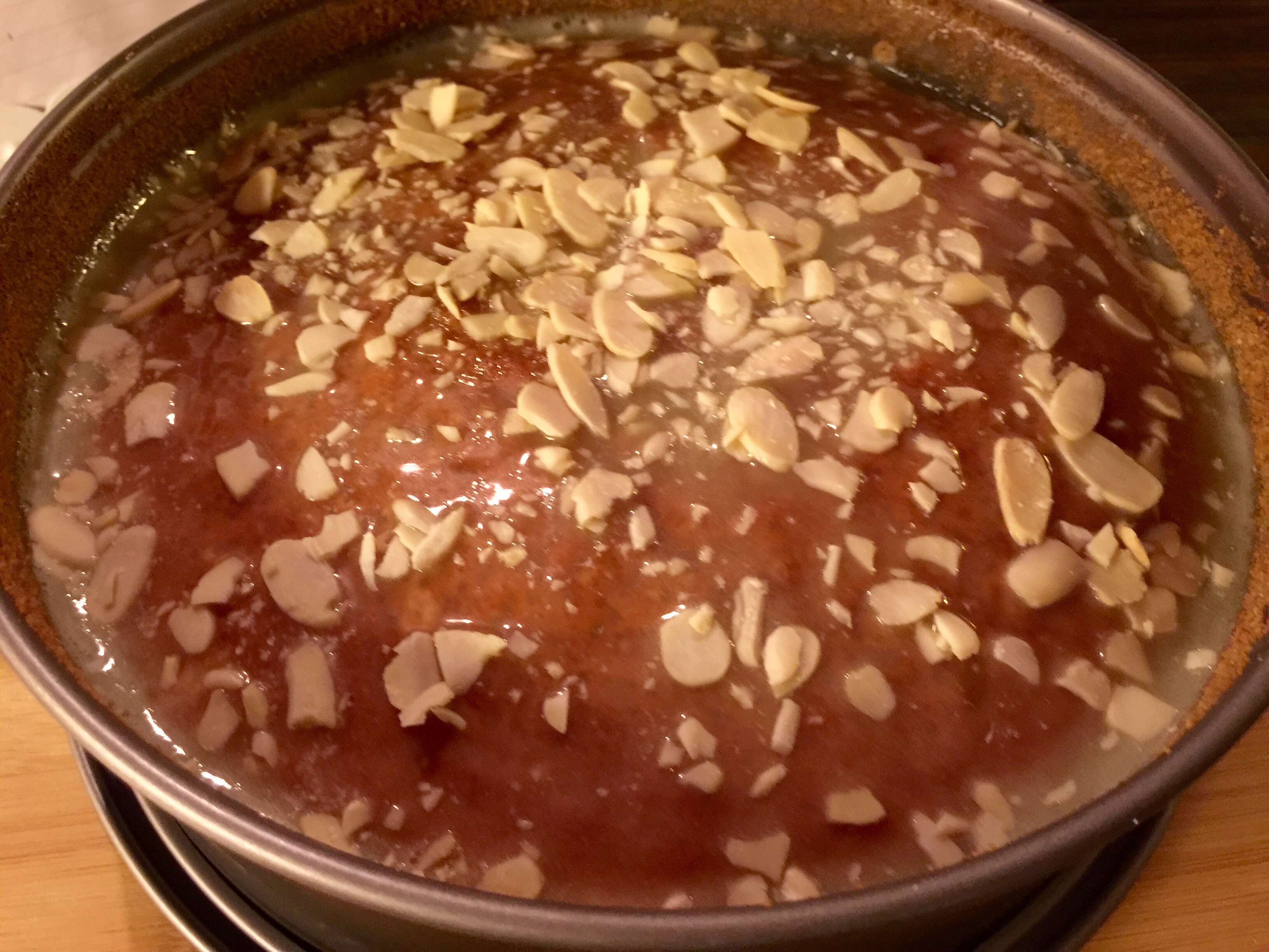 Ha på kakan när den svalnat. Om du vill kan du ha på rostad flagad mandel.