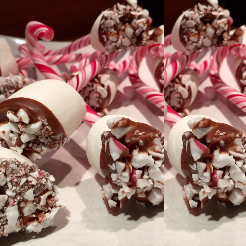Smält chokladen och doppa marshmallowsen i. Tryck sedan ner den i polkakrosset.