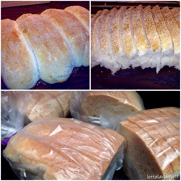 Låt bröden svalna på galler och skär dem sedan i sneda bitar och servera!