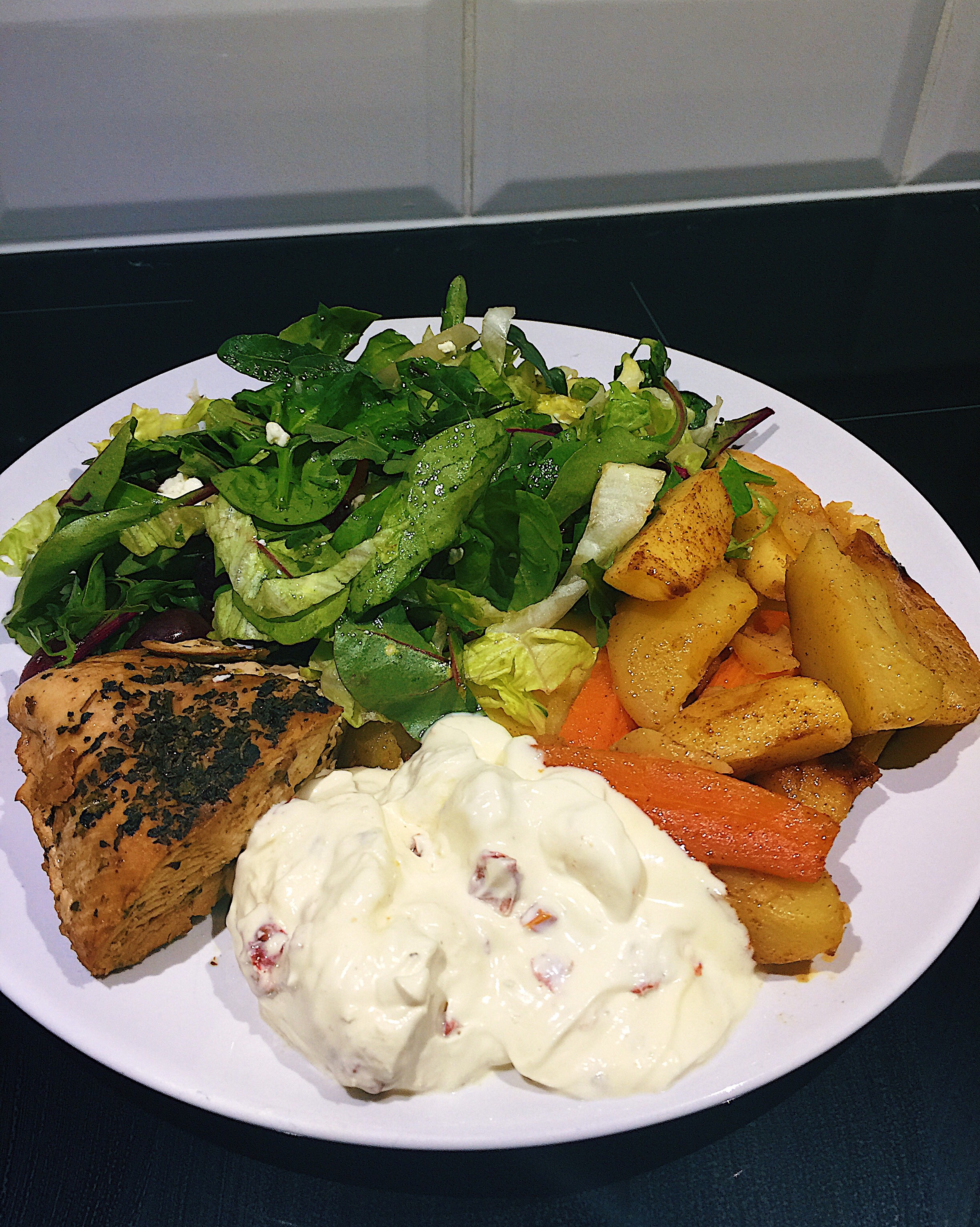 Blanda allt och smaka av med salt och ev mer kryddor. Vill man kan man pressa i en liten vitlöksklyfta. Ställ kallt i kylen en stund.