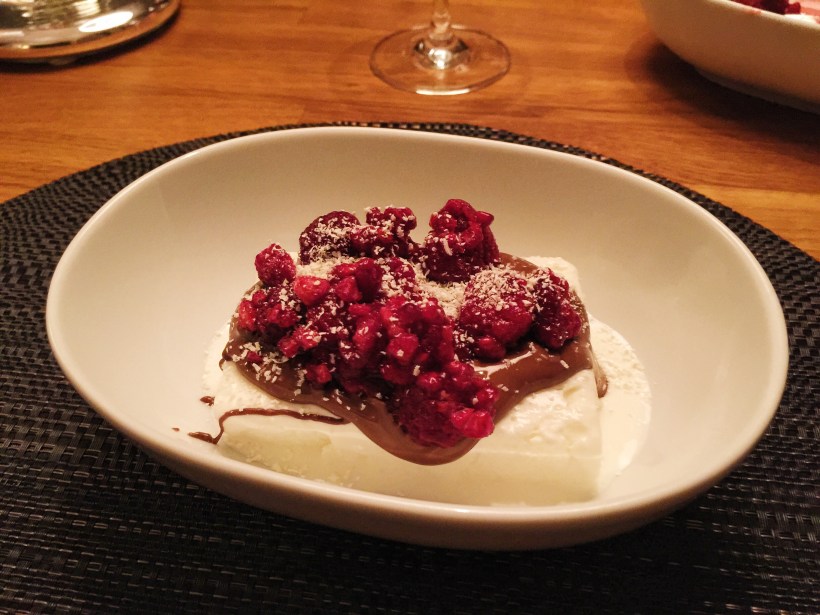 Till efterrätt bjöd Emilia på Frozen yoghurt med färska bär, smält choklad & riven vit choklad.